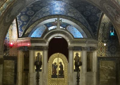 Отправление на Опленац – важное место в истории Сербии. Посещение главной достопримечательности этого места – храма Св. Георгия, являющегося мавзолеем династии Карагегориевичей, в котором покоятся члены этой сербской королевской семьи. Храм Св. Георгия, выполненный в сербско-византийском стиле, славится своими прекрасными мозаиками на 3500 кв.м. — работой русских художников — эмигрантов. Затем, посетим дом Петра Карагеоргиевича, внука знаменитого вождя сербского восстания, который заложил идею о создании мавзолея династии.